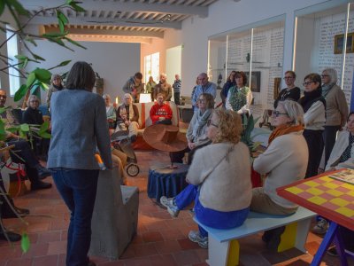 In de voormiddag bezochten we de expo 'Faith No More. Rituals for Uncertain Times' in Museum Abby. ’s Namiddags stonden Be-Part en Texture op het programma - twee boeiende locaties waar onze groep zich helemaal liet onderdompelen in kunst, vakmanschap en verhalen uit de regio.